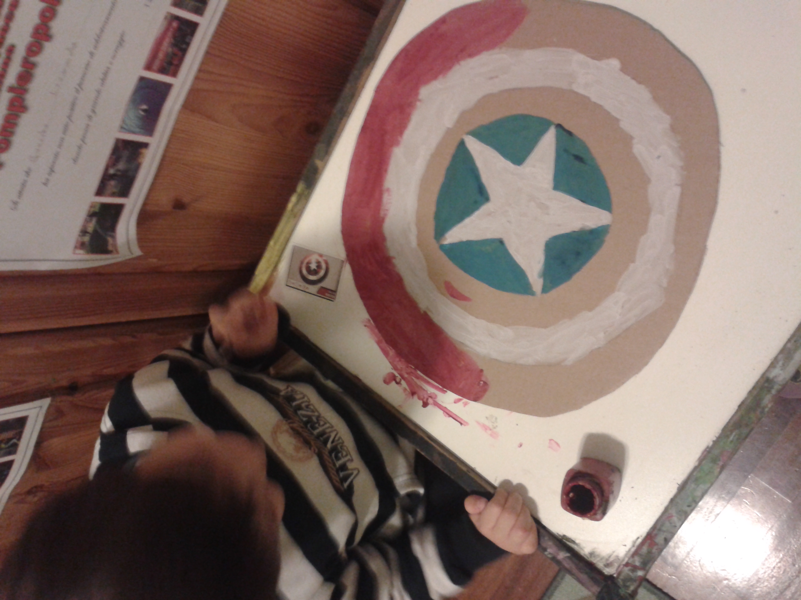 Ora, in previsione della giornata di Carnevale, dove lo scudo verrà un po’ più strapazzato, l’ho ricoperto con il flatting (la vernicetta trasparente), così sarà un po’ più impermeabile e resistente ad eventuali segni.