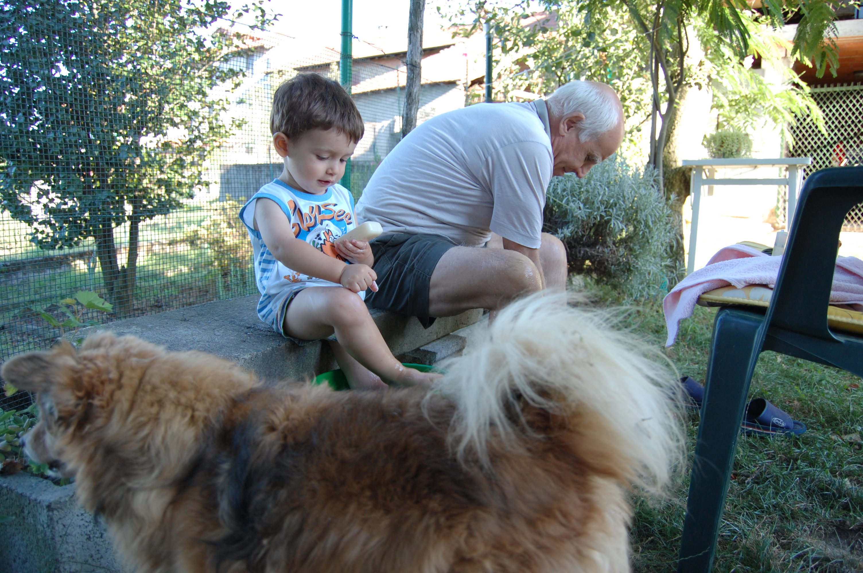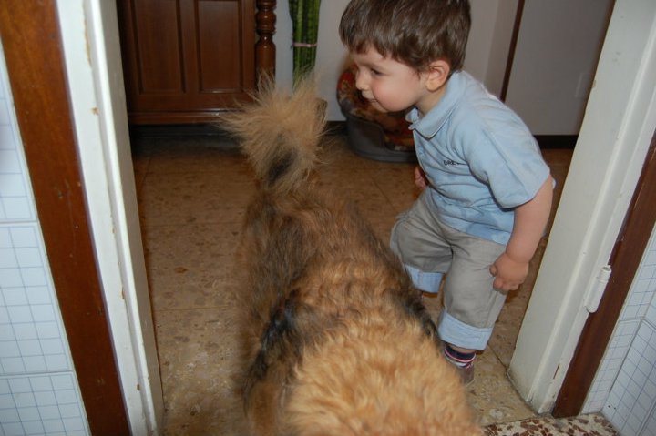 Ti abbiamo portato fuori tutti i giorni, sole e pioggia, caldo o freddo… Quante passeggiate, quanti giri al parco al grido di “non tirare!” perchè ovviamente eri un trattore. E se ti lasciavamo da solo per qualche ora (il tempo di una spesa al massimo) al ritorno erano feste a non finire, ciabatte rubate e baci. Tanti baci.