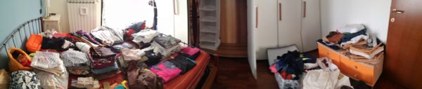 Per prima cosa preparo due sacchi, in uno metterò le cose da buttare perchè troppo vecchie o rovinate, nell’altro invece le cose che posso dare a qualcuno.