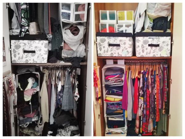 Io appendo i vestiti, i pantaloni e le gonne. Mentre maglie, maglioni e camicie stanno piegati sui ripiani.